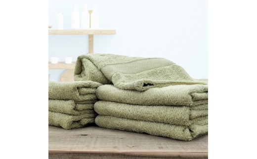 【フェイスタオル7枚組】しなやかオーガニックコットンタオル(34×80cm) ナナイロ【グリーン】×1セット(同色7枚)