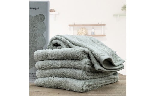 【フェイス6枚組】ボックス入りオーガニックコットンタオル(33×100cm)やわより×グリーン1セット(同色6枚)