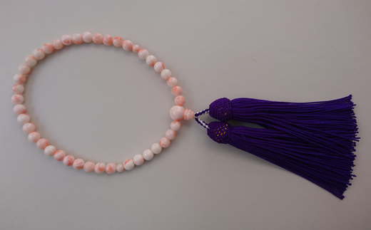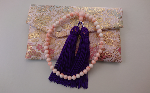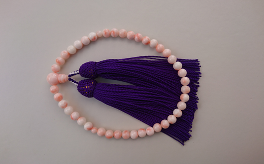 深海珊瑚(カラーグレード:3):約6.5mm玉、親玉:約10mm、房:正絹※数珠袋付き(デザインはお任せ)