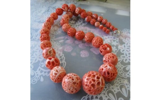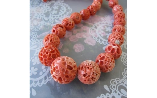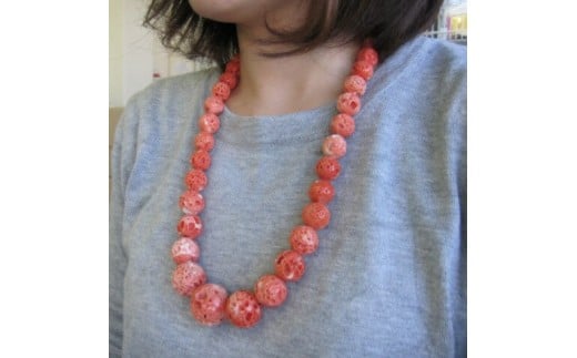 桃珊瑚す玉(カラーグレード:4)センター玉:約26.5mm、金具付近:約8mm、ネックレスの長さ:約64cm(金具込)、金具:SILVER、重さ:150g