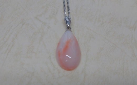 深海珊瑚(カラーグレード:3):約22mm×約13mm、金具:Gシルバー、チェーン:40cm真鍮