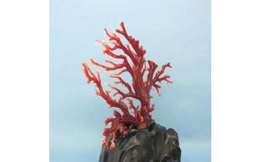 高知産血赤珊瑚(カラーグレード:5):約W14.5cm×約H12cm、根元付近の直径:約13mm、重さ:48.8g*黒檀台付