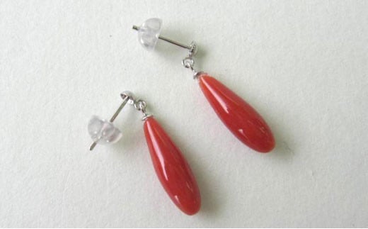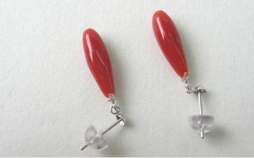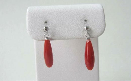 高知産赤珊瑚(カラーグレード:3.5):約4.6mm×14mm、厚さ:約4.1mm、金具:K14WG