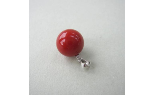 高知産赤珊瑚(カラーグレード:3.5):10.6mm玉、ダイヤモンド0.01ct、金具:K18WG(チェーンは付いていません。)