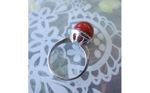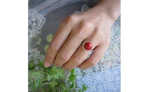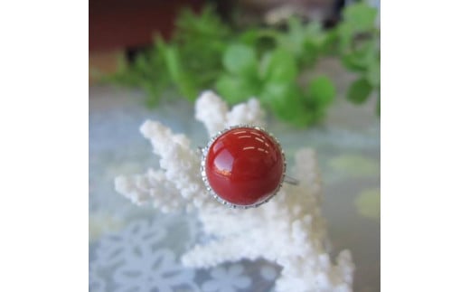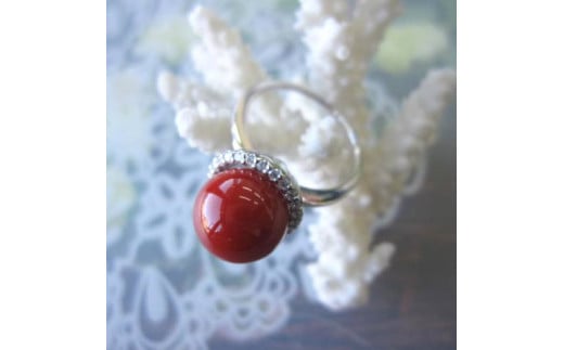 血赤珊瑚(カラーグレード:4.5):10.3mm玉、金具:K18WG、ダイヤ:0.18ct、重さ(金具込):4.7g、リングサイズ:11.5号※サイズの直し承ります。(6号から17号)※2週間程度お時間をいただきます。※その他のサイズをご希望の際はご相談ください。
