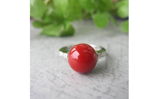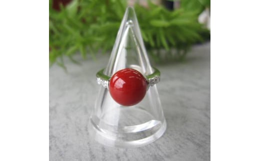 血赤珊瑚(カラーグレード:4.5):9.6mm、金具:Pt.900、ダイヤ:0.14ct、リングの重さ:5.9g、リングサイズ:約12号※サイズの直し承ります。(6号から17号)※2週間程度お時間をいただきます。※その他のサイズをご希望の際はご相談ください。
