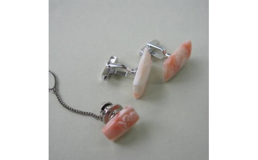 ピンク珊瑚(カラーグレード:1~3):カフス:約22mm×約13.3mm、厚さ:約4.2mm、
