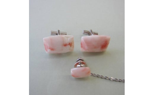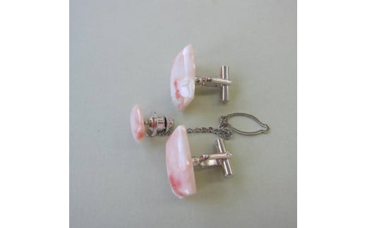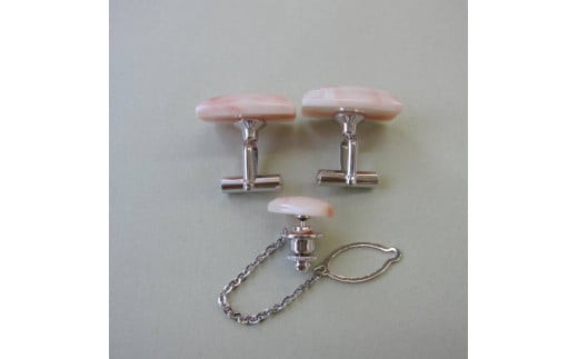 ピンク珊瑚(カラーグレード:2):(カフス):約16.7mm×23mm・17.4mm×23.3mm、(タイタック):約13.5mm×10.2mm、