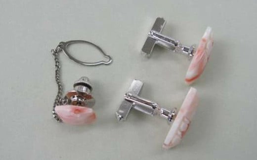ピンク珊瑚(カラーグレード:2):カフス:約19.6mm×11.6mm、タイタック:約12.2mm×8.3mm、