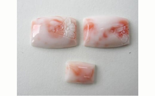 ピンク珊瑚(カラーグレード:2):約16.7mm×23.4mm(カフス)、約10.8mm×14.3mm(タイタック)、