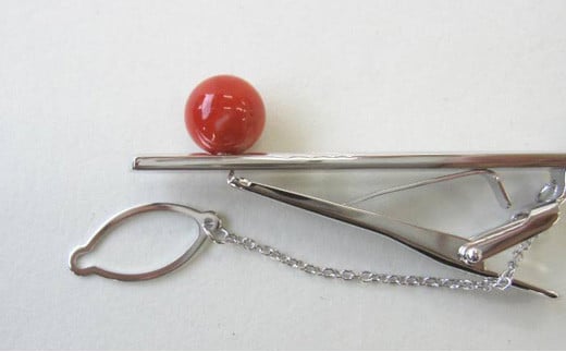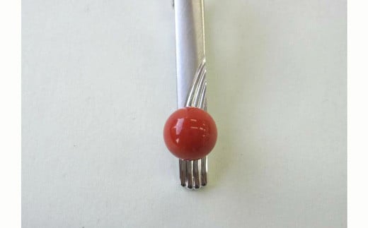 高知産赤珊瑚(カラーグレード:3.5):9.6mm玉、タイピンの長さ:53mm、金具:G.SILVER