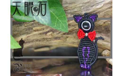 『天眼石』あなたを見守るハンドメイド猫マクラメ編みアクセサリー-01