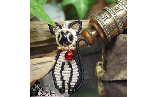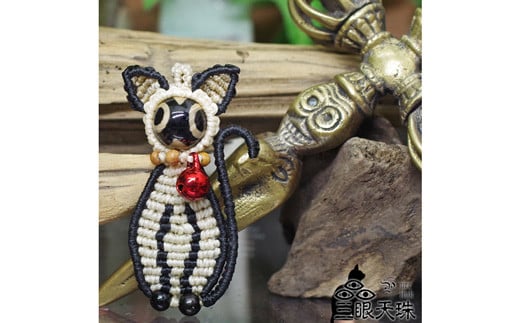 『三眼天珠』あなたを見守るハンドメイド猫マクラメ編みアクセサリー