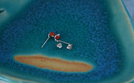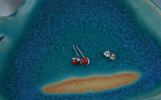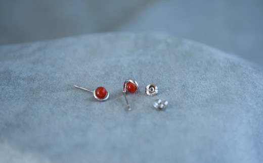土佐沖赤珊瑚(カラーグレード:3):3.5mm玉、全重量:0.4g、金具:K14ホワイトゴールド(デザイン枠)