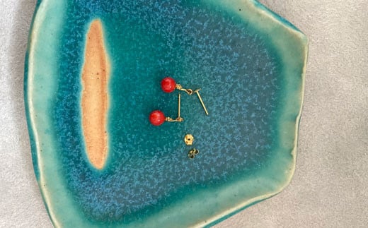 地中海珊瑚(カラーグレード:3.5):丸玉5.5mm、全重量:0.9g、金具:K18、ブラ(デザインあり)