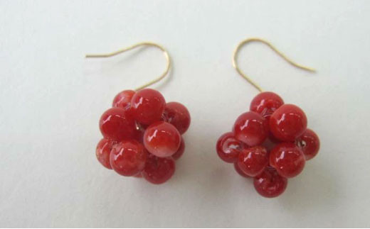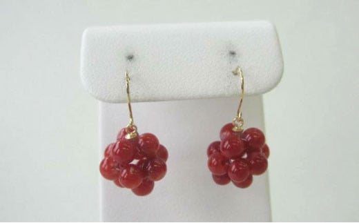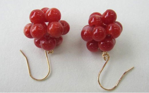 高知産血赤珊瑚(カラーグレード:3.5~4):直径約11mm、金具:K18