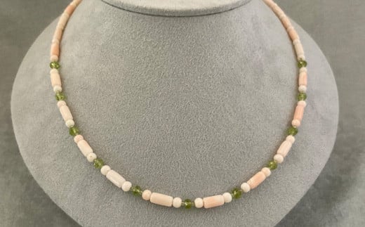 丸玉:4mm、2mm×22ヶ、ペリドット:4mmカット×11ヶ、全長:46cm、全量:12g、金具:SV、ゴールドカラー引輪