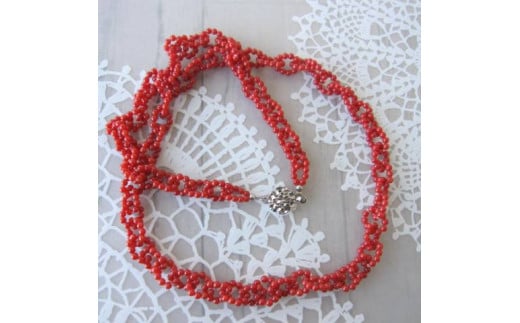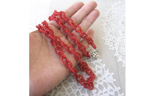イタリア産赤珊瑚、一玉:約2.7mm玉、長さ(金具込):約65cm、金具:SILVER、重さ:25.4g