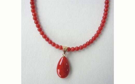 イタリア産赤珊瑚(ネックレス)(カラーグレード:3.5):約3mm玉、長さ:約47cm、金具:K18