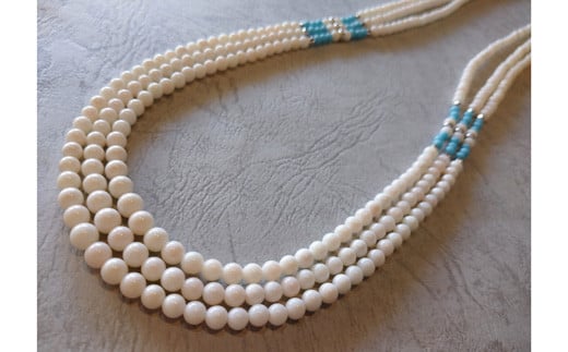 白珊瑚(カラーグレード:2):3mm~6mm玉、金具:SILVER、トルコ石:約54g、長さ:65cm
