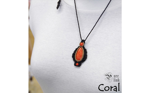 珊瑚のハンドメイドマクラメ編みネックレス-01