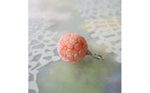 ピンク珊瑚(カラーグレード:3.5):約12.7mm、金具:K18WG、ダイヤモンド:0.02ct、トップのみ