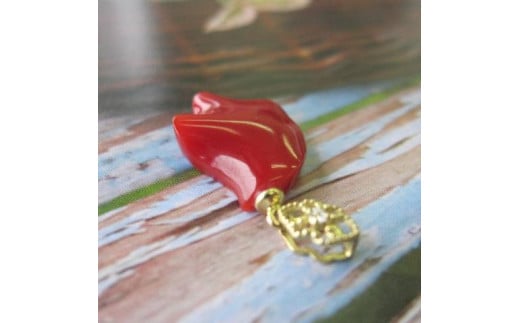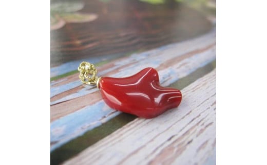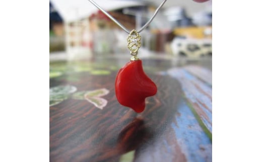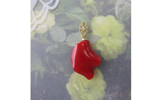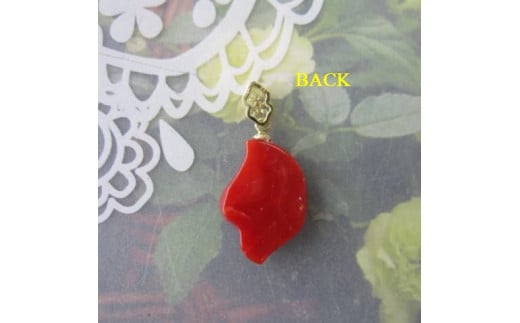 高知産血赤珊瑚(カラーグレード:4):約17mm×12.5mm、厚み:約4mm、金具:K18WG、ダイヤモンド:0.01ct、重さ:1.6g(金具込)、トップのみ