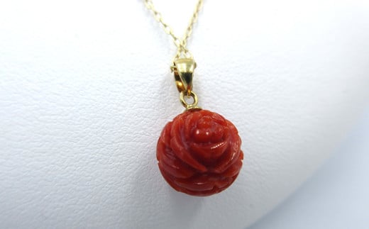 土佐沖血赤珊瑚バラ総彫りK18ペンダント(2083-20)