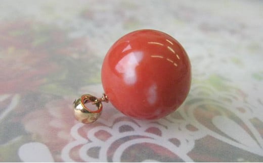 桃珊瑚(カラーグレード:4):14.7mm玉、金具:K18、ダイヤモンド0.03ct