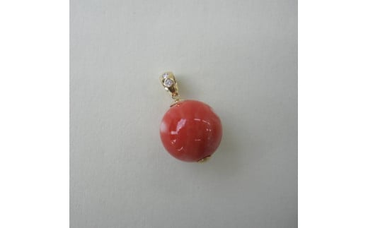桃珊瑚(カラーグレード:4):15.5mm玉、金具:K18、ダイヤモンド0.05ct