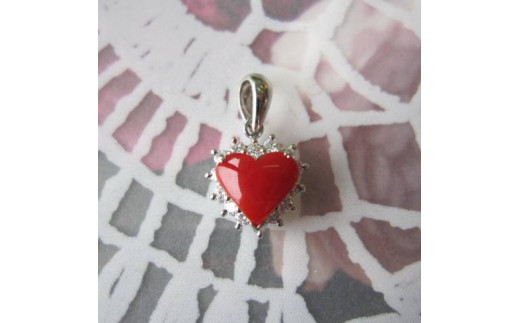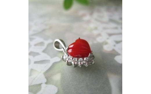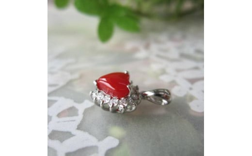 高知産血赤珊瑚(カラーグレード:4):6.5mm×7.5mm、ペンダントの大きさ(バチカン部分除く):約10mm×10.2mm、厚み:約7mm、ダイヤモンド:0.2ct、重さ(金具込):2.0g、金具:プラチナ900、トップのみ