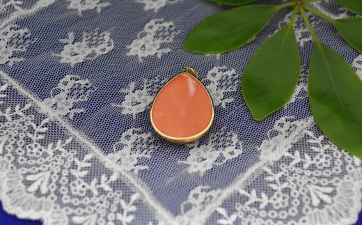 桃珊瑚桜の彫り(カラーグレード:3):35mm×25mm×9.2mm、K18デザイン枠で取り巻き、全体の重さ:12.3g、トップのみ