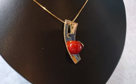 血赤珊瑚(カラーグレード:4.5):10.2mm玉、金具:K18、ダイヤ:0.10ct、チェーン:K18、スライドアジャスター付き:45cm、重さ:8.6g