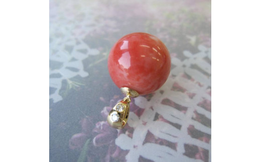 桃珊瑚(カラーグレード:4):16.6mm玉、ダイヤモンド:0.05ct、金具:K18(チェーンは付いていません)