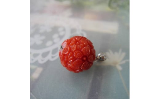 高知産血赤珊瑚(カラーグレード:3.5):14.8mm玉、ダイヤモンド:0.03ct、金具:プラチナ900