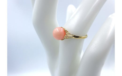 ピンク珊瑚7.0mmK18リング(2088-26)