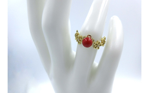 土佐沖血赤珊瑚5.7mmK18リング(2088-23)