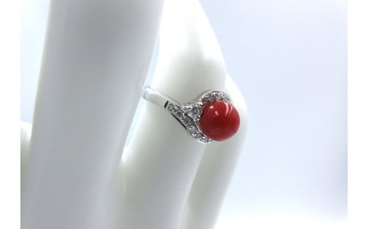 土佐沖血赤珊瑚7.58mmプラチナリング(2088-17)