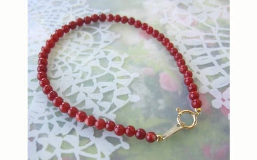 高知産血赤珊瑚(カラーグレード:4.5):約3.2mm~3.9mm玉、金具:K18、内径サイズ:約18cm