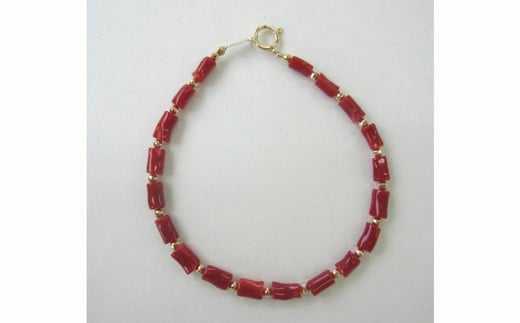 高知産血赤珊瑚(カラーグレード:4):約5.8mm~6.8mm×3.5mm~4.5mm玉、K18ミラーボール:2mm、金具:K18、内径サイズ:約17.5cm