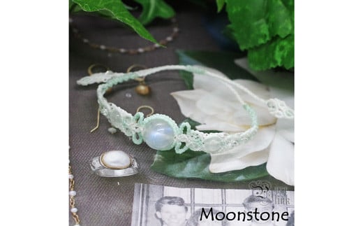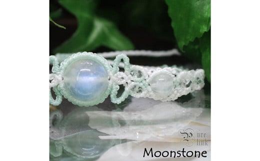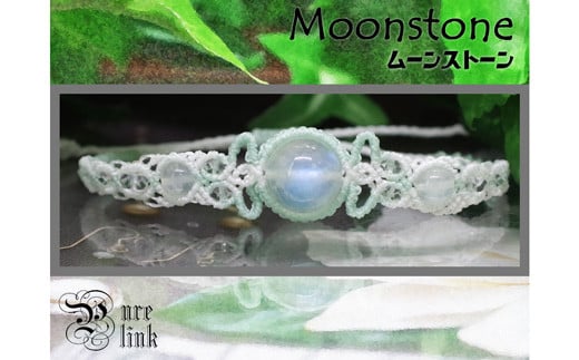 サイズ:フリー(最小内周13cm~)、ロイヤルブルームーンストーン:13mm玉、ロイヤルブルームーンストーン:6mm、水晶:ボタンカット、