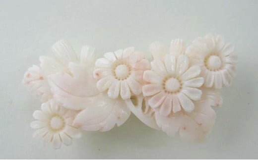 ミッド珊瑚(カラーグレード:1):28.3mm×57.3mm、厚み:約9.8mm、金具:真鍮
