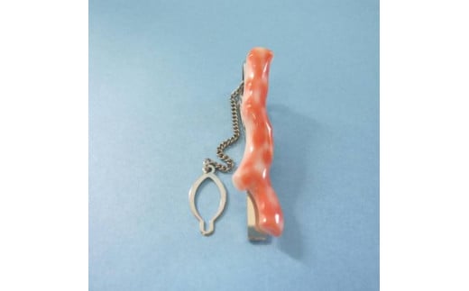 ピンク珊瑚(カラーグレード:3):約50.5mm×10.5mm、厚さ:約7mm、金具:真鍮、タイピン:約5.1cm