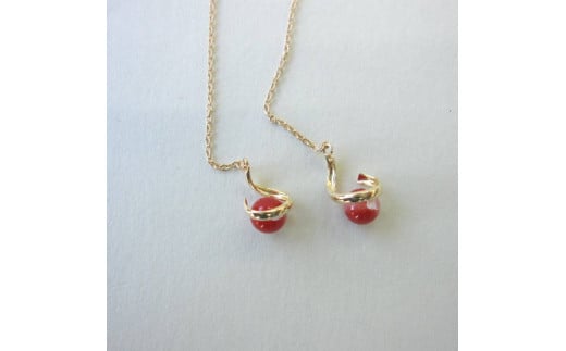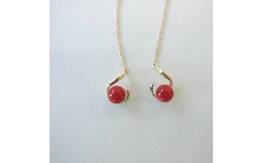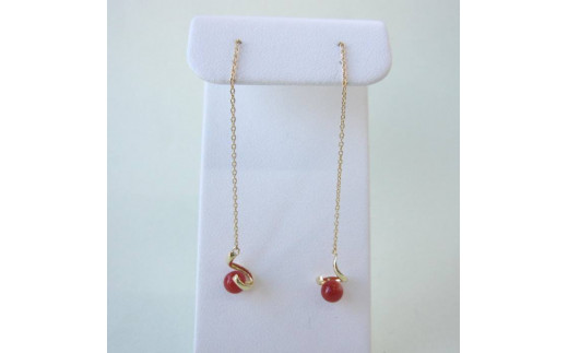 高知産血赤珊瑚(カラーグレード:3.5):4.3mm、金具:K18、ピアス全長:約5.5cm