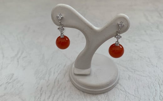 サルジ珊瑚(カラーグレード:2.5):約7.3mm玉、金具:K14WG・ジルコン