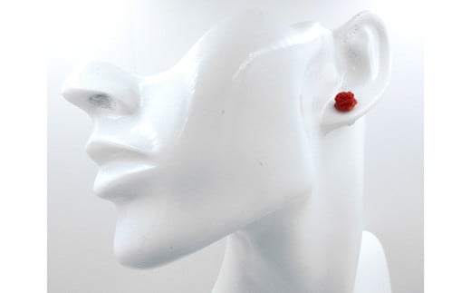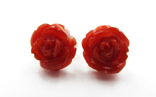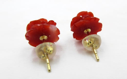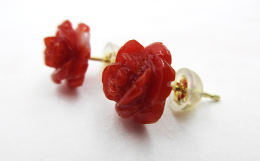 土佐沖血赤珊瑚長径約8.8~9.2mmバラK18ピアス(fpi-85)