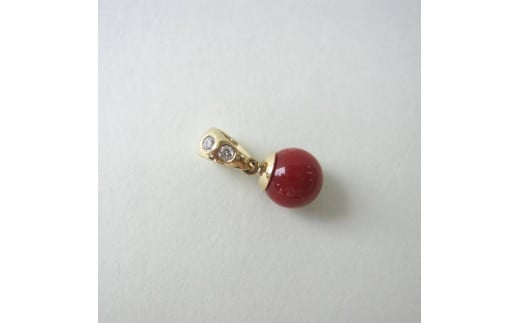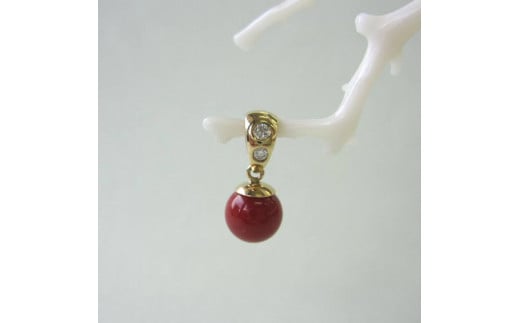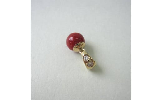 高知産血赤珊瑚(カラーグレード:4):7.2mm玉、金具:K18、ダイヤモンド:0.05ct