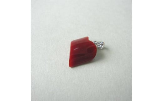 高知産血赤珊瑚(カラーグレード:5):約14mm×13.5mm、厚み:約6mm、金具:K18WG、ダイヤモンド0.01ct、重さ:1.6g(金具込)