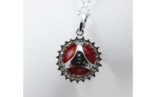 土佐沖血赤珊瑚約9.5mm玉ダイヤモンドK18WGペンダント(fpe-77)