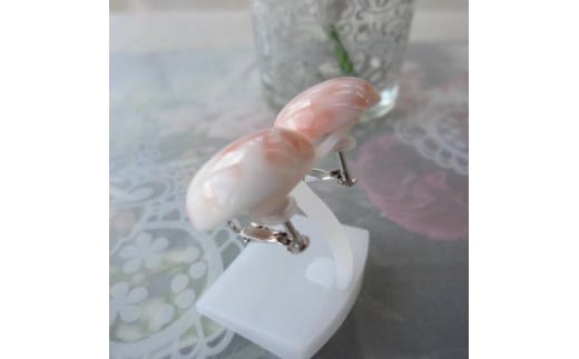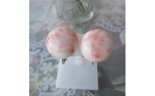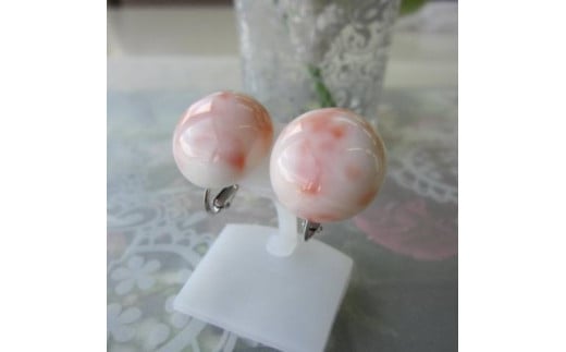 ピンク珊瑚(カラーグレード:2):直径18.6mm、厚さ:約7mm、金具:K18ホワイトゴールド・ネジバネ式